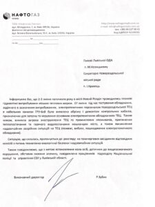 Також повідомляємо, що з метою встановлення кола осіб, дотичних до вищезазначеного порушення, обставин скоєння злочину, повідомлено працівників підрозділу Національної поліції та управління СБУ у Львівській області», – йдеться в офіційному повідомленні керівництва ТОВ «Нафтогаз тепло» за підписом виконавчого директора ТОВ «Нафтогаз тепло» Романа Зубика.