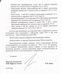 У офіційному повідомленні до керівництва області, міста та правоохоронних органів йдеться: «Інформуємо Вас, що 2-3 липня поточного року в місті Новий Розділ проводились планові гідравлічні випробування міських теплових мереж. 07 липня під час тестування обладнання, задіяного в зазначених випробуваннях, електротехнічним персоналом Новороздільської ТЕЦ в кабельних каналах ГРУ-6кВ було виявлено обрізку і демонтаж контрольних кабелів, призначених для запуску та керування основним електротехнічним обладнанням ТЕЦ. Таким чином, виникла загроза знеструмлення ТЕЦ та промислових споживачів, припинення теплопостачання та гарячого водопостачання мешканцям міста, а також виникнення надзвичайних аварійних ситуацій на ТЕЦ (пожежі, вибухи, пошкодження електротехнічного обладнання).
