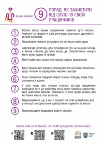 - Знайдіть час щоб протерти власний робочий стіл, комп’ютерну техніку, дверні ручки кабінетів, мобільні телефони.