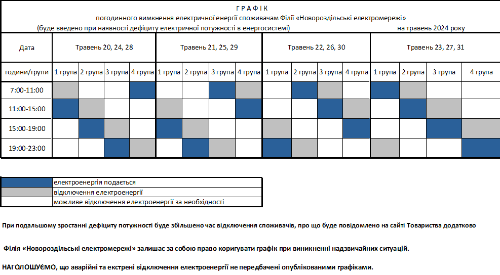 В зв’язку з проведенням поточного ремонту електрообладнання ТП-6/0,4 кВ буде вимкнено в період, з 09.00 год. до 12.00 год., 17.04.2024р. електропостачання споживачів електричної енергії міста Новий Розділ, за адресами: вул. Шашкевича, 3, 5, 7, 9, пр. Шевченка, 23, 25, 27, 29.